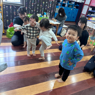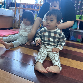 音楽に合わせて、リズミカルに身体を動かしたり歌ったりとニコニコの子ども達です🥰