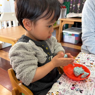1・2歳児さんは、ねんど遊び 0歳児さんは触れ合い遊びをしました💨