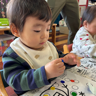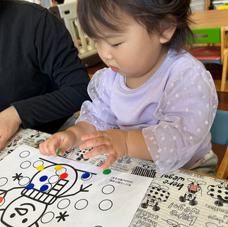 シールを自分ではがして、雪だるまの台紙にぺたん⛄