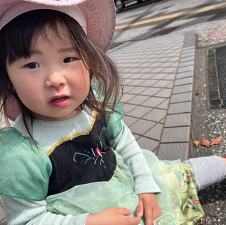おやつを食べ準備満タン!!カートに乗り、保育者と手を繋ぎ出発👯