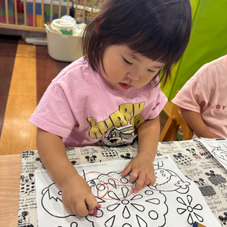 お絵描きでは、実際に花火の動画を見て、花火の塗り絵をした後、大きな紙に思い思いの花火を描きましたよ🎆