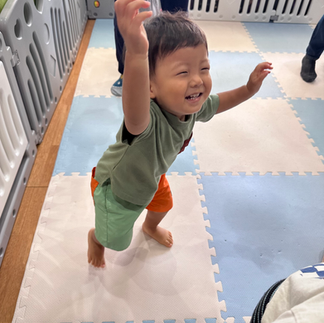 0歳児さんは足に絵具の感触が付く様子に不思議な表情を見せたり、ペッタンが上手に出来て達成感の表情を見せてくれました✨